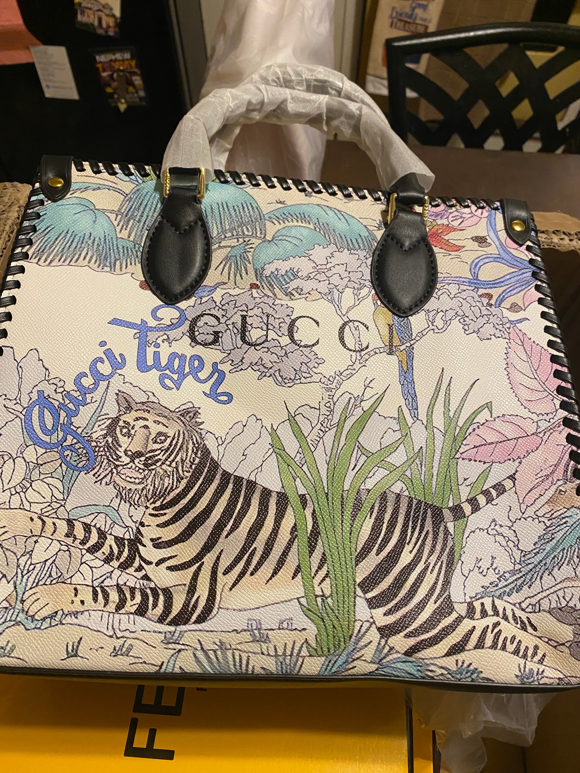 Black embroidered threaded designer bag, no feet, zipper, inside pocket zipper along with long inside compartment.