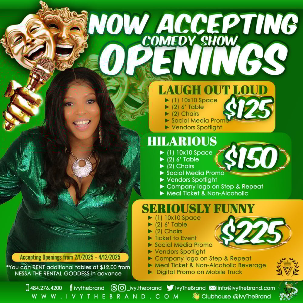 In the event that the Philadelphia Live Entertainment Comedy Show is canceled all funds will be transferred to rescheduled event. Payments however can be transferred with prior approval from IvytheBrand Business Consultant Firm only for equal value.
