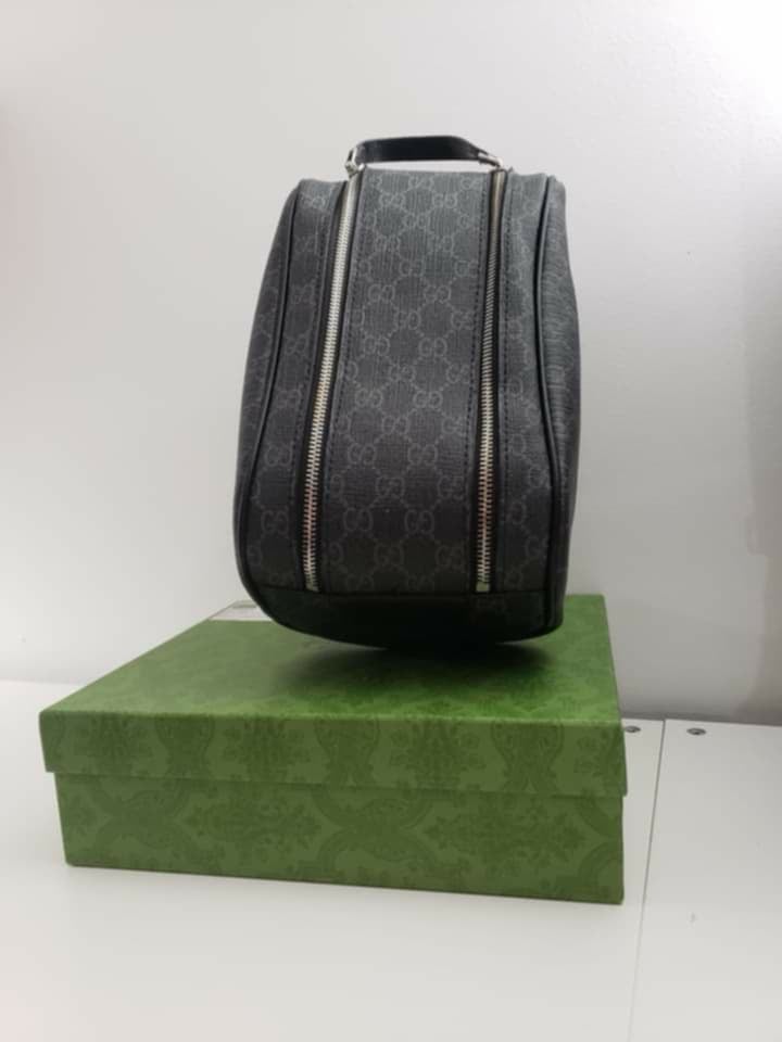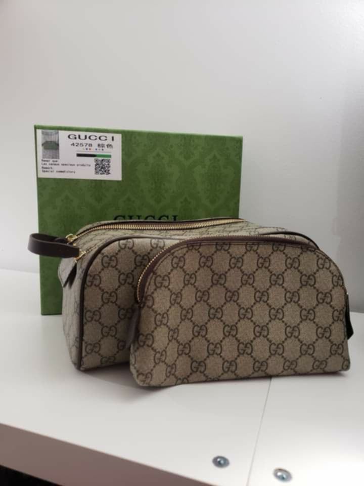 GG brown & GG black Rectangle shaped / toiletrie set with matching mini pencil/ cosmetic bag inside . This serves will set off the finishing touches to any Traveling Luxury Luggage !!