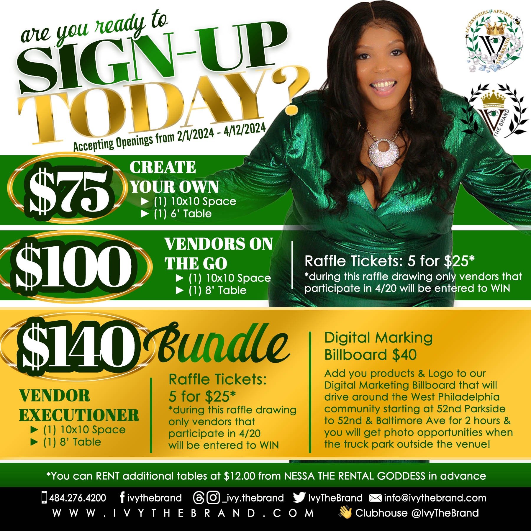 **UPGRADE to our $100 packet which includes 5 raffle tickets …during this raffle drawing only vendors that participate in 4/20 will be entered to WIN ***