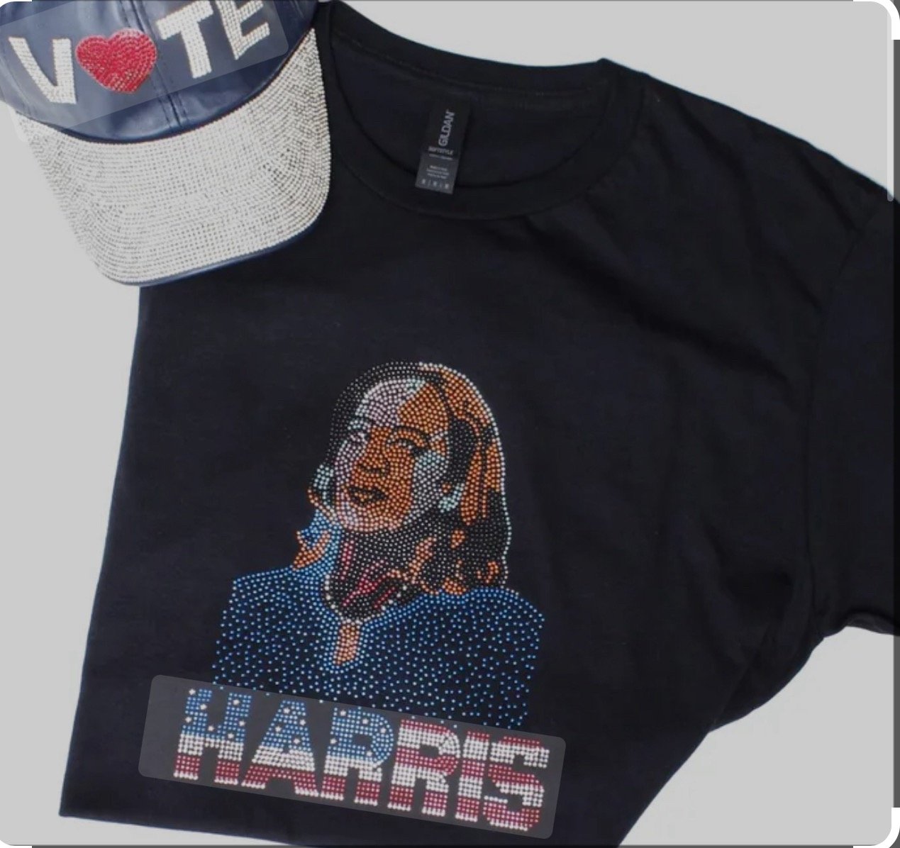 And on Tuesday November 5, 2024 when you campaign at the polls… look fabulous in your Blinged out Vice President Kamala Harris Blue or Black T-Shirt from IvytheBrand Luxurious Boutique!!
